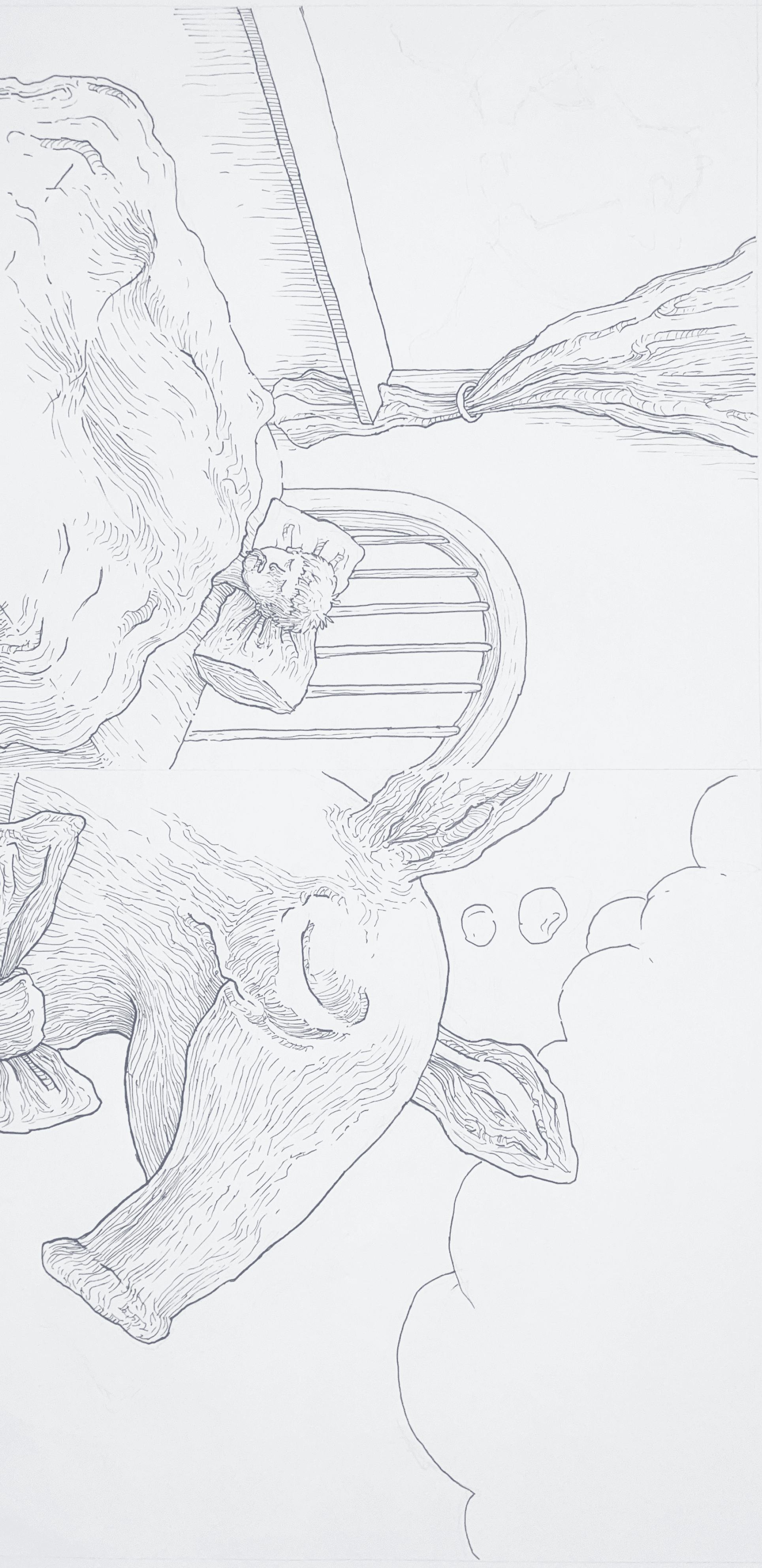 The author requested that my style be somewhat resemblant of two already famous illustrators, Edward Gorey and Ian Falconer:
