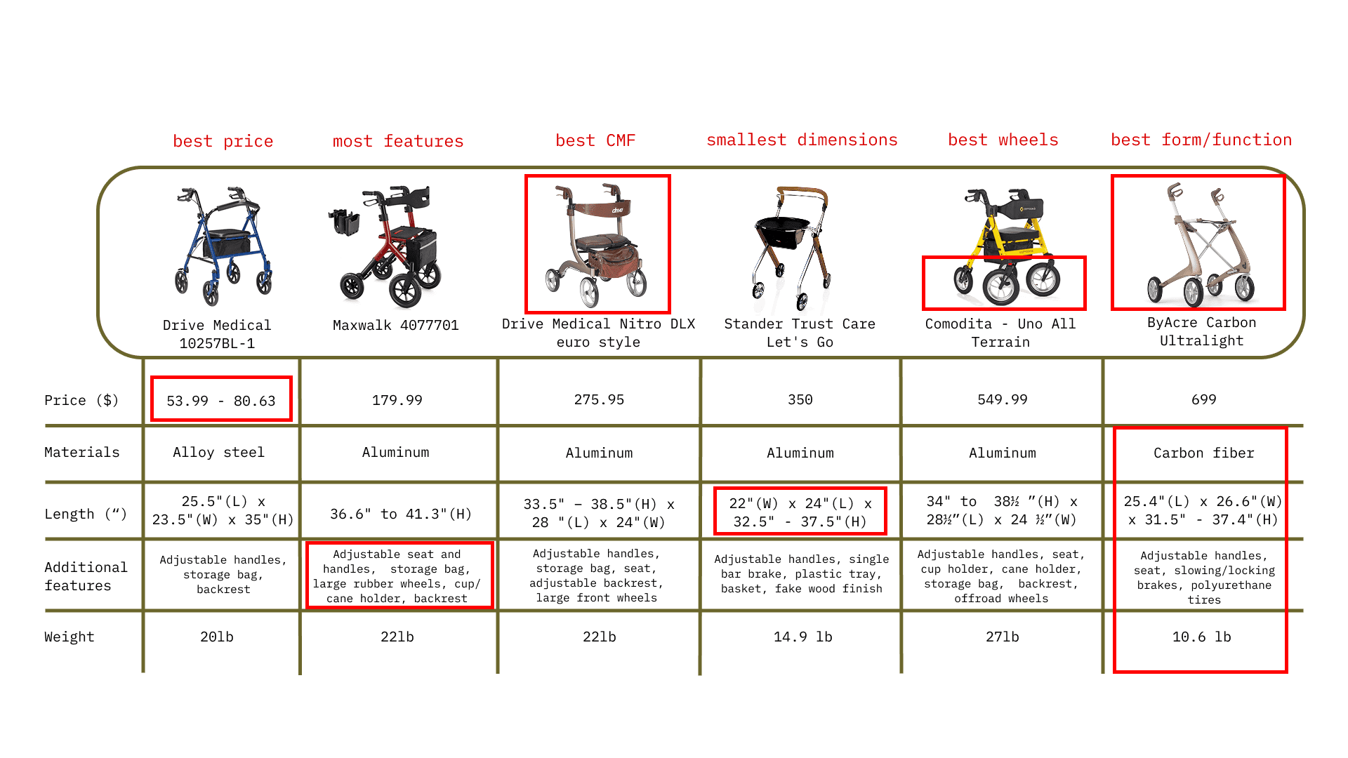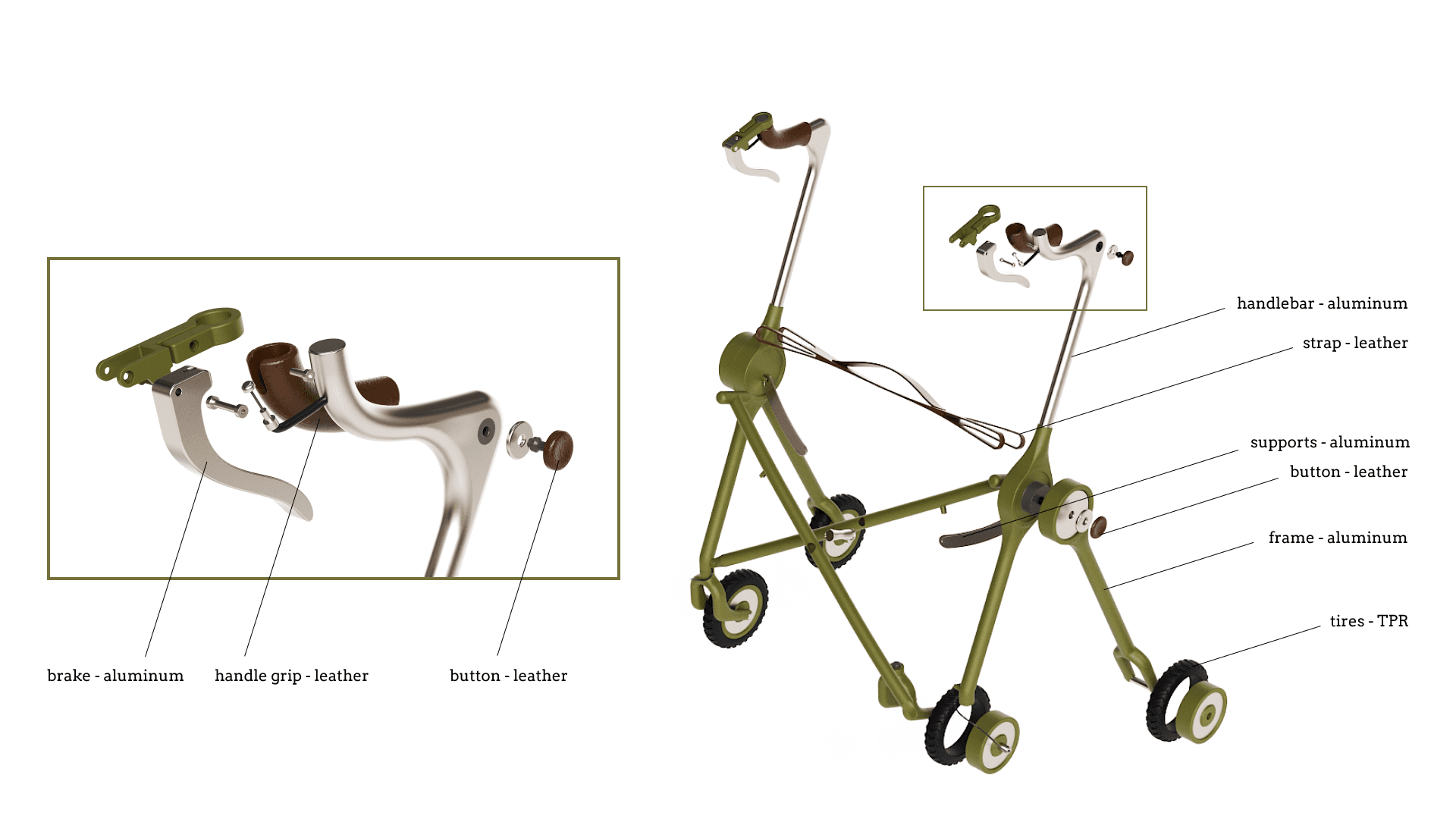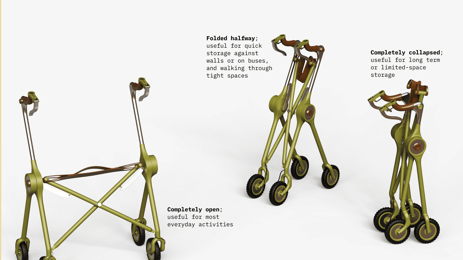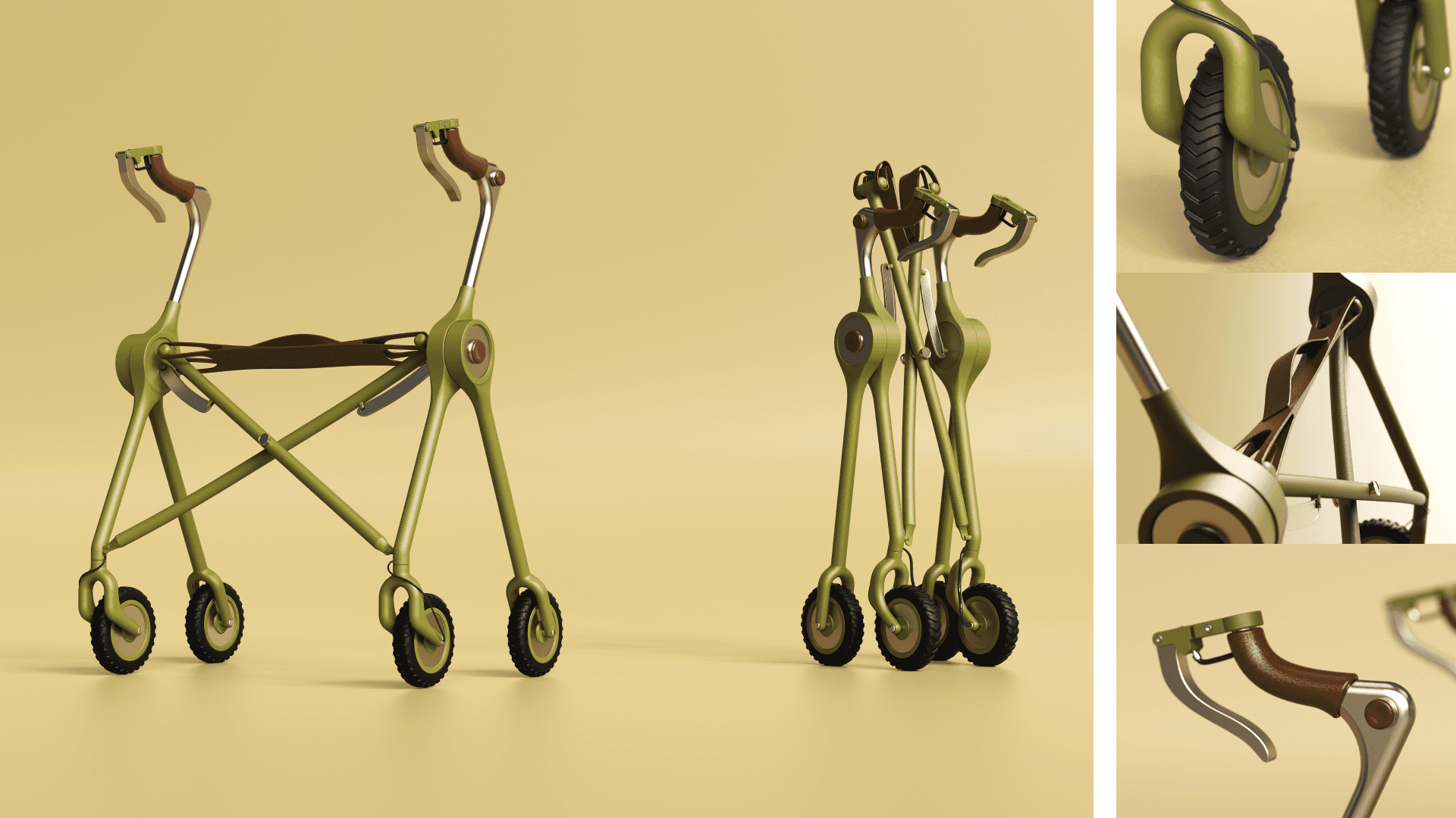Our main goal was to create a walker for people who want their mobility back. It caters to its audience with low-resistance folding and touch points, and ergonomic grips; we want to take away strain. Walkers are frequently seen as a burden, but they should be seen as an accessory.