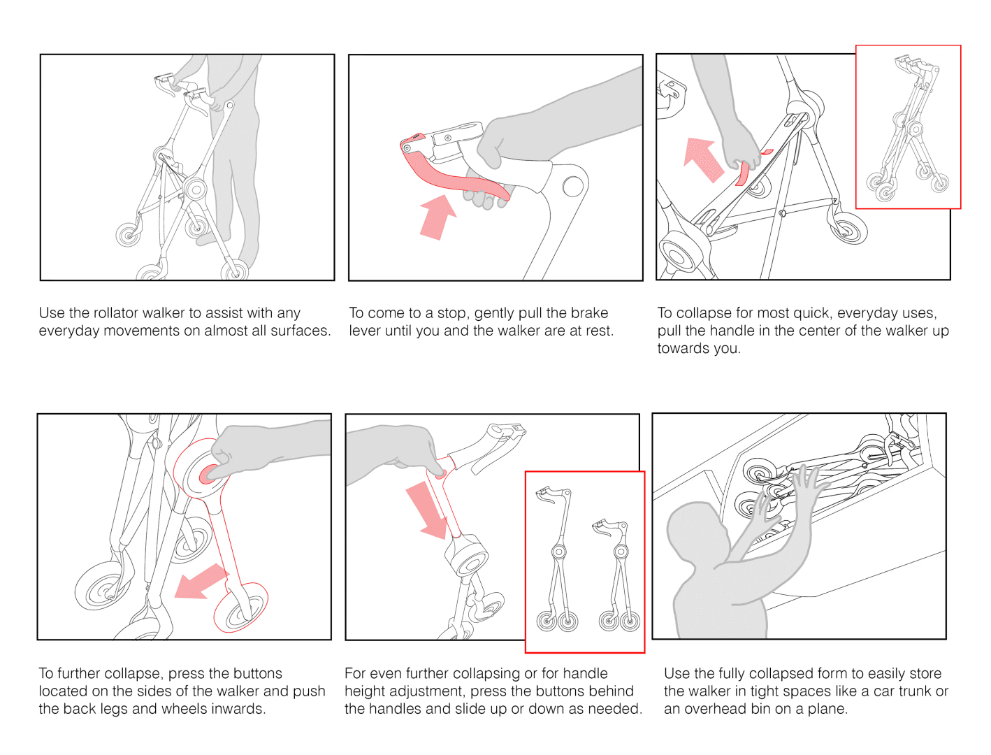 Rollators walkers on the market are not compact enough. They don't reduce the walker's footprint nearly enough and they don't collapse efficiently.