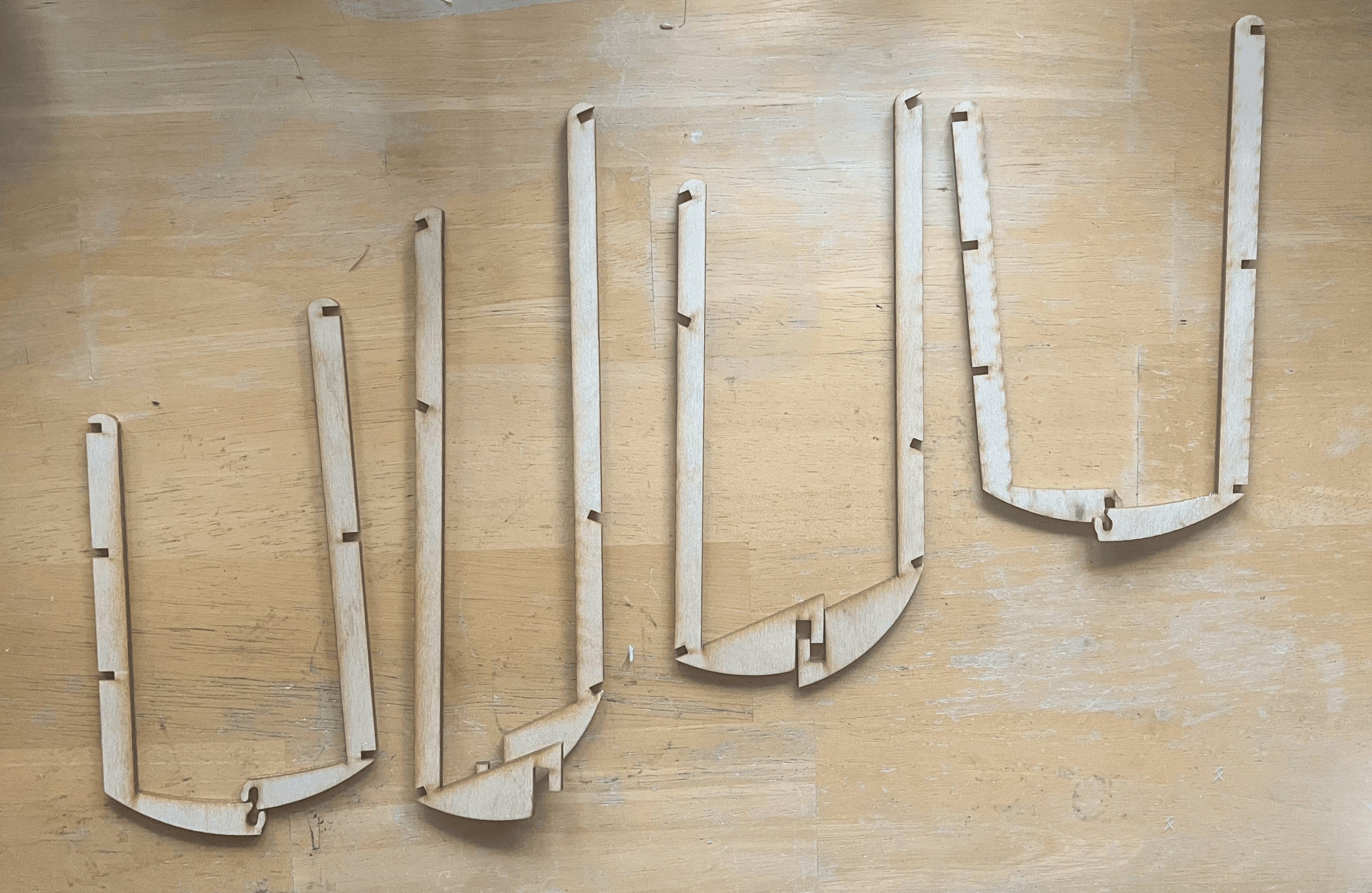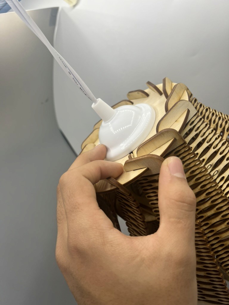 I made a mid-fidelity prototype out of cardboard before I starting working with the final material, birch plywood. After this, most of my prototyping focused on the frame and the “gear” pieces that would make up the interior of the lamp. This resulted in a myriad of failed attempts and subsequent tweaks.